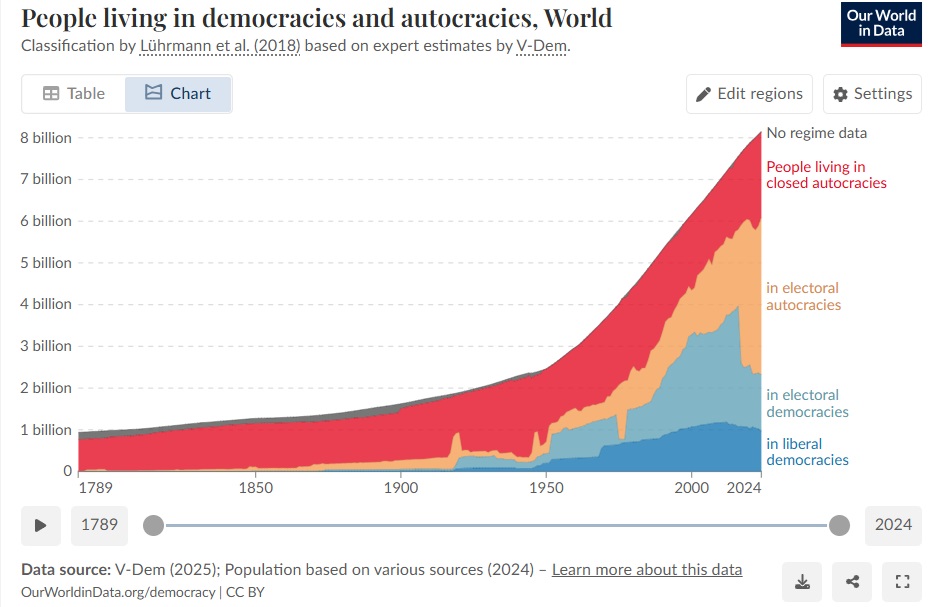 We attended an excellent conference on China last week, with good speakers and content. It was focused on the US -China economic relationship and rivalry, which meant that the large elephant in the room was ignored: Democracy. China has a lack of it and America has an increasingly weak hold on it. Most China analysts frame things through a U.S.-China rivalry. We don’t. China is now the most powerful nation in the world, which shouldn’t be a problem except that it’s ruled by an authoritarian government intent on making the world safe for authoritarianism. And so we were interested in reading an article in the Journal of Democracy that defends the virtues of democracy. The author writes, “Democracy delivers on peace, mortality, years of schooling, and economic growth.” However, as a research paper we wrote about in July asserts, “institutionalized” authoritarian regimes grow economically at about the same rate as democracies. But those regimes often turn into personalized dictatorships. Personalized dictatorships grow more slowly economically than democracies. Regardless of whether an authoritarian regime lags behind or equals democracy’s economic outcomes, who would rather not live in freedom with just as good economic growth rather than in repression? Well, as we’re learning in America, many people. Unfortunately, the elephant stampedes and people still ignore it.